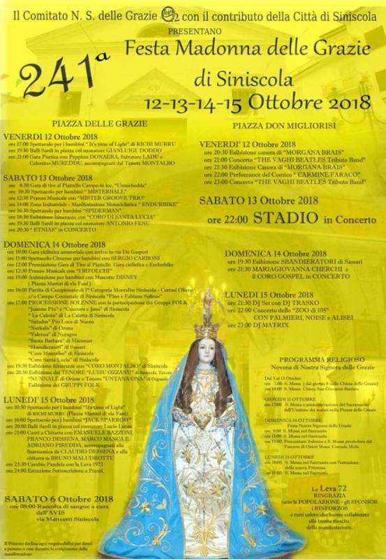 La Festa Madonna delle Grazie di Siniscola si svolgera dal 12 al 15 Ottobre 2018