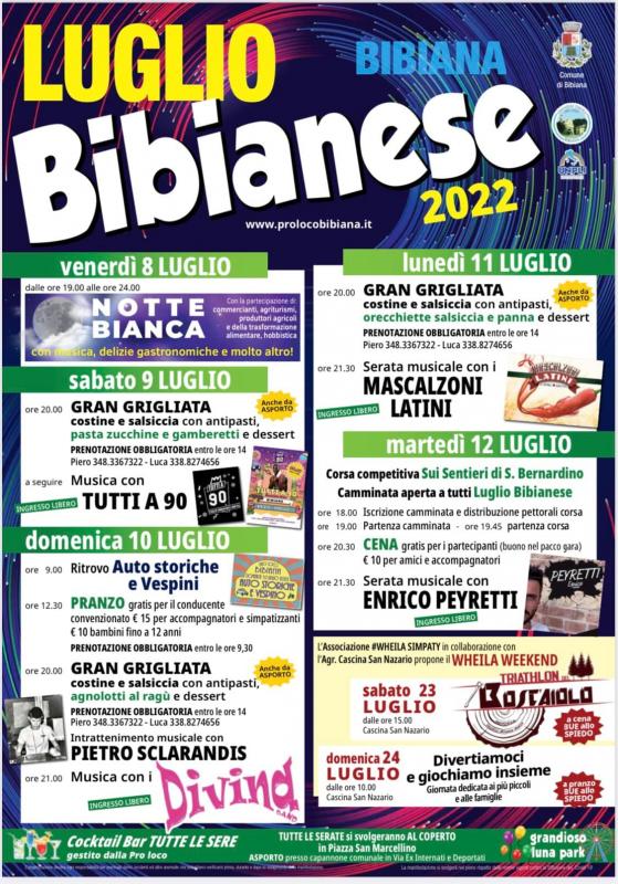 Il Luglio Bibianese caratterizza da tempo l'estate a Bibiana, quest'ann si svolfe dal 8 al 12 Luglio.