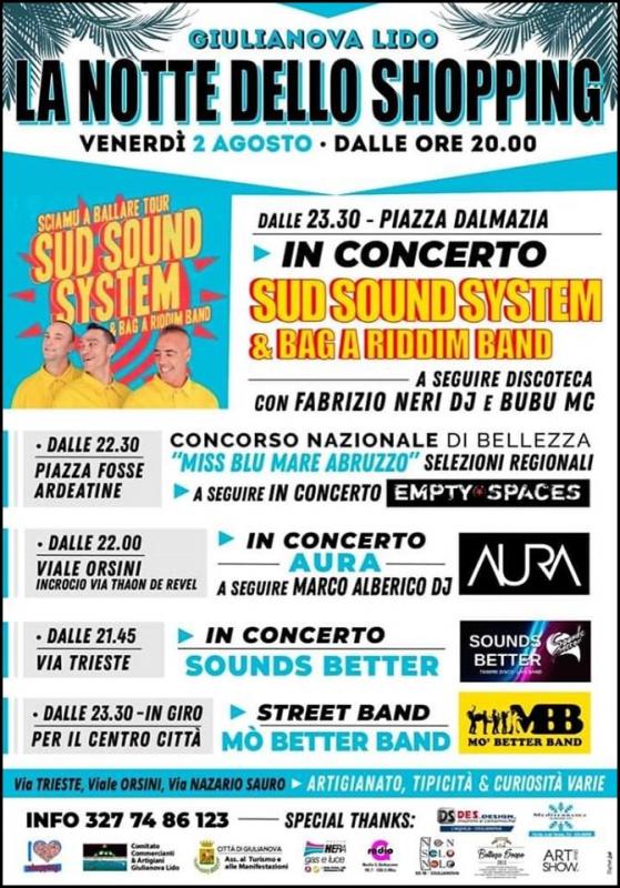 A Giulianova in provincia di Teramo si svolge nella giornata di Venerdì 02 Agosto 2019 la Notte dello Shopping.