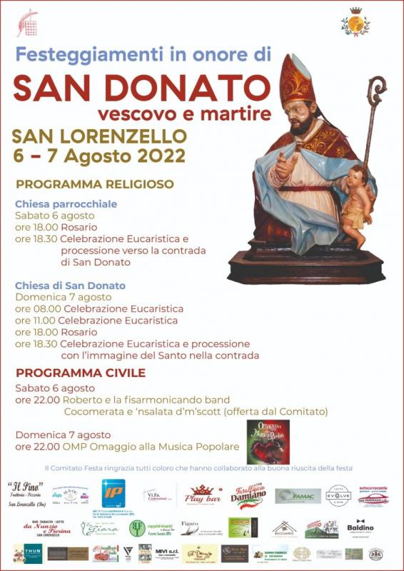A San Lorenzello in provincia di Benevento si svolge nei giorni 06 e 07 Agosto 2022 la Festa di San Donato.