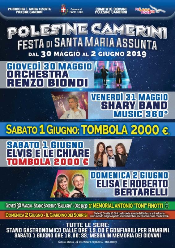 La Festa Santa Maria Assunta a Polesine Camerini, frazione del comune di Porto Tolle (RO) si svolgera dal 30 Maggio al 1 Giugno 2019