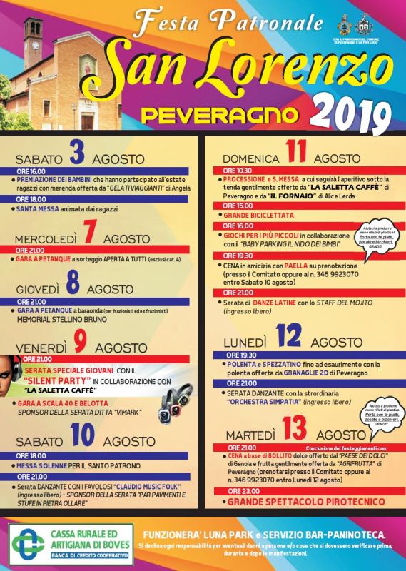 A Peveragno in provincia di Cuneo si svolge nei giorni dal 03 al 13 Agosto 2019 la Festa Patronale di San Lorenzo.