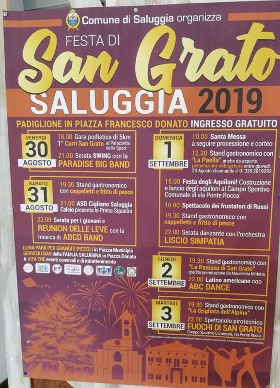 Ore 19.30: Apertura Stand Gastronomico con "LA PANISSA DI SAN GRATO" (PRENOTAZIONI PRESSO MACELLERIA MOLETTO.)