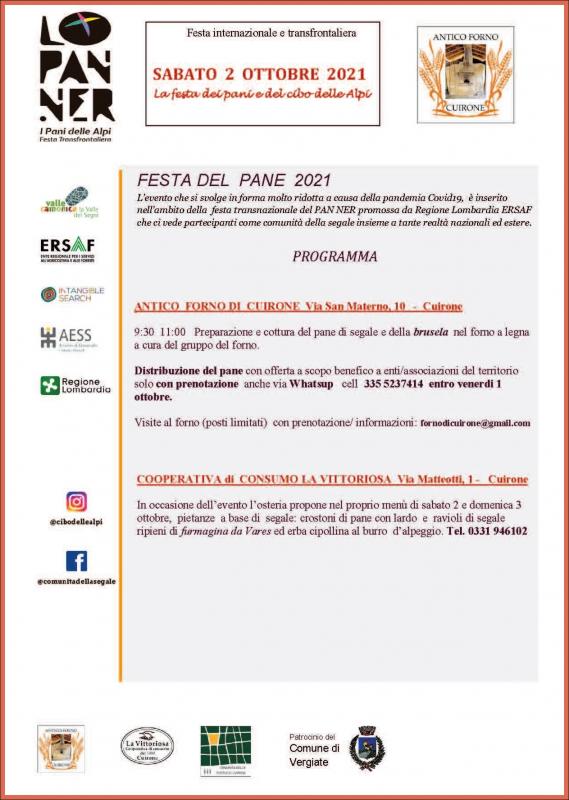 La Festa del Pane a Curione di Vergiate (VA) si svolgera Sabato 02 Ottobre 2021.