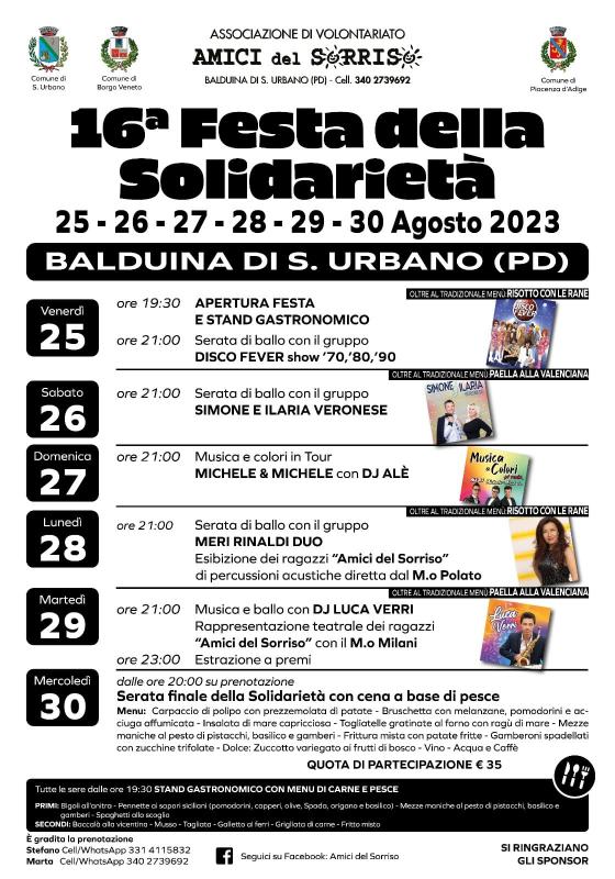 A Balduina, frazione del Comune di Sant'Urbano in provincia di Padova si svolge dal 25 al 30 Agosto 2023 la Festa della Solidarietà.