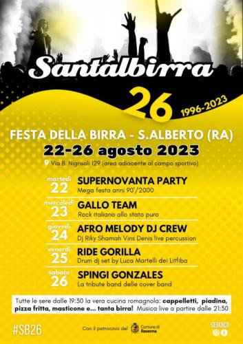 Dopo 2 anni di stop torna Santalbirra, la festa della birra a Sant’Alberto. Da martedì 22 a sabato 26 agosto 2023 si festeggia la 25esima edizione all’insegna del buon cibo, birra, musica e tanto divertimento.