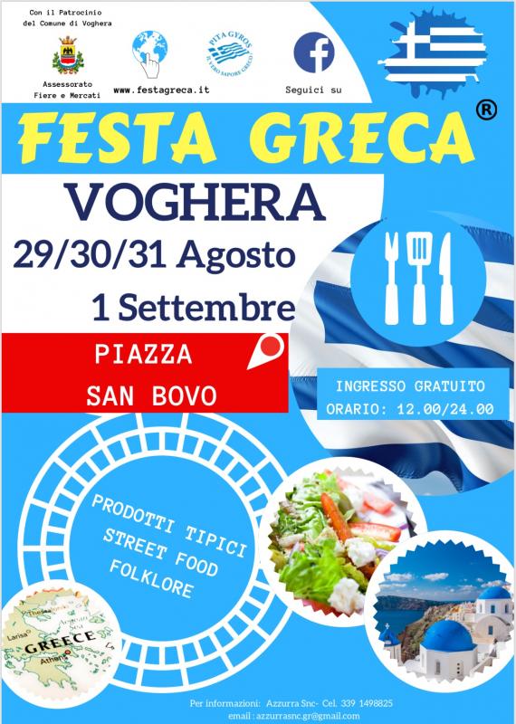 Dal 29 agosto al 1 settembre è in programma a Voghera la prima edizione della Festa Greca che porterà per quattro giorni sapori, tradizioni e costumi ellenici al centro della città.