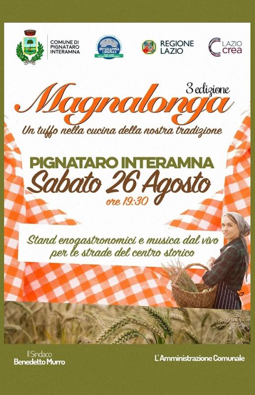 A Pignataro Interamna in provincia di Frosinone si svolge nella giornata di Sabato 26 Agosto 2023, alle ore 19.30, la 3a edizione di Magnalonga Pignatarese - Tra Tradizioni e Gusto.