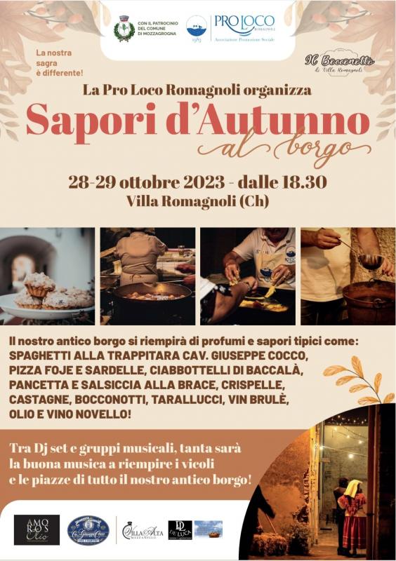 A Mozzagrogna in provincia di Chieti si svolge nella giornata di 28 e 29 ottobre 2023 la festa Sapori d'Autunno nel Nostro Borgo.