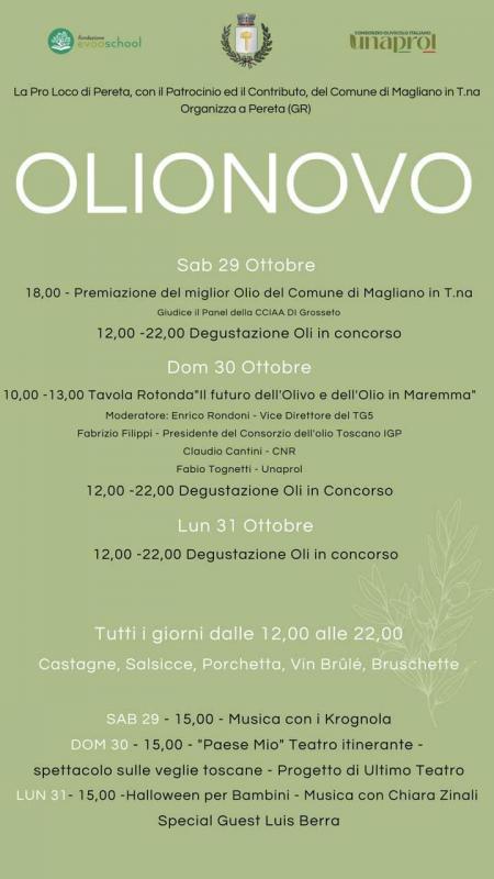 Da Sabato 29 a Lunedi 31 Ottobre a Pereta ci sarà "OLIONOVO".