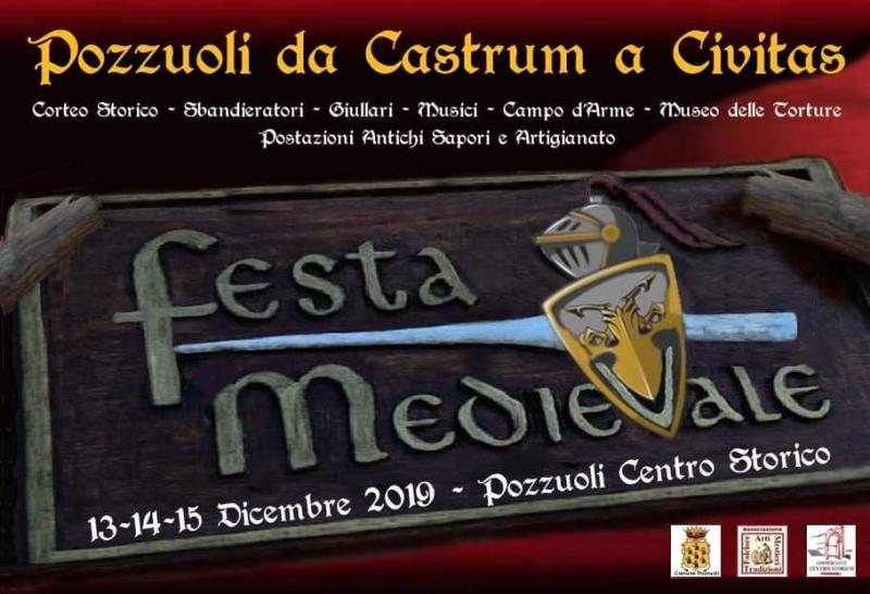 Per tre giorni, dal 13 al 15 dicembre, il centro storico di Pozzuoli rivivrà un suggestivo periodo del suo passato medievale. Nobili cavalieri, dame e cortigiani, sbandieratori e giullari, unitamente a mercanti ed artigiani, faranno rivivere le arti, i mestieri e le atmosfere di un piccolo spaccato di vita medievale.