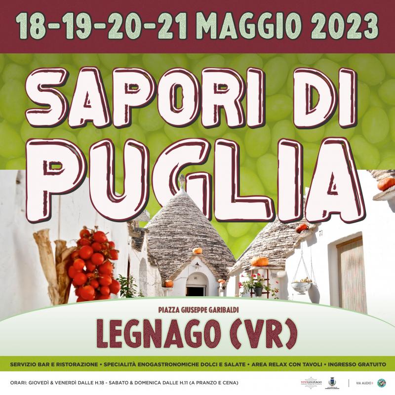 Tornano a grande richiesta con la bella stagione gli appuntamenti enogastronomici all'aperto nel cuore di Legnago (VR): da Giovedì 18 a Domenica 21 Maggio 2023 in scena l'11° edizione di Sapori di Puglia, il format itinerante dedicato alla cucina pugliese, per un weekend lungo quattro giornate da non perdere presso la centrale Piazza Garibaldi!
