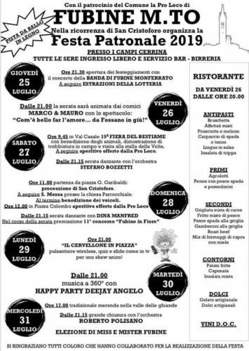 per la ricorrenza di san cristoforo la Festa Patronale a Fubine si svolge dal 26 al 31 Luglio 2019 a Campi Cerrina.