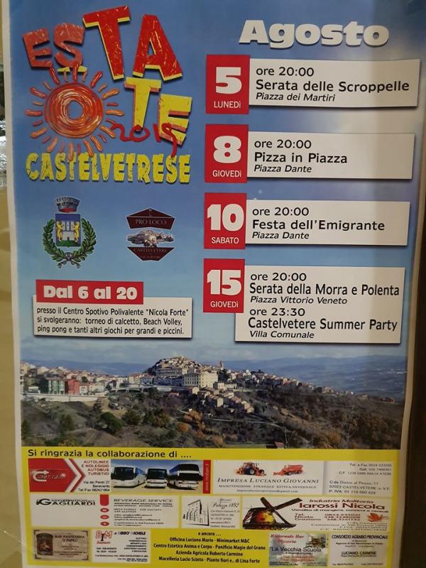 A Castelvetere in Val Fortore in provincia di Benevento si svolgono nei giorni dal 05 al 20 Agosto 2019 diversi appuntamenti per l'Estate Castelvetrese.