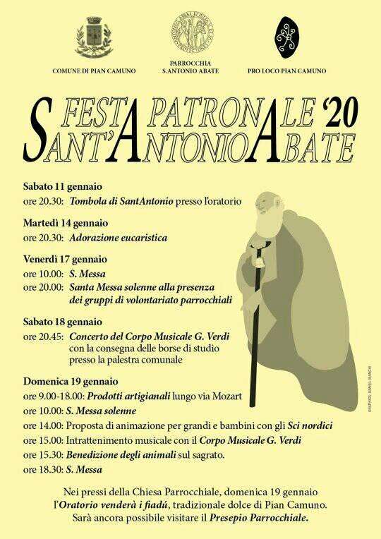 A Pian Camuno in provincia di Brescia si svolge nei giorni 11, 14, 17, 18, 19 Gennaio 2020 la Festa Patronale di Sant'Antonio Abate.