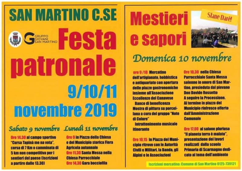 Festa patronale: da sabato 9 a lunedi 11 novembre torna la Cursa Tapinà me nà vòta, con la fiera della gastronomica, dell'hobbistica e dell'artigianato