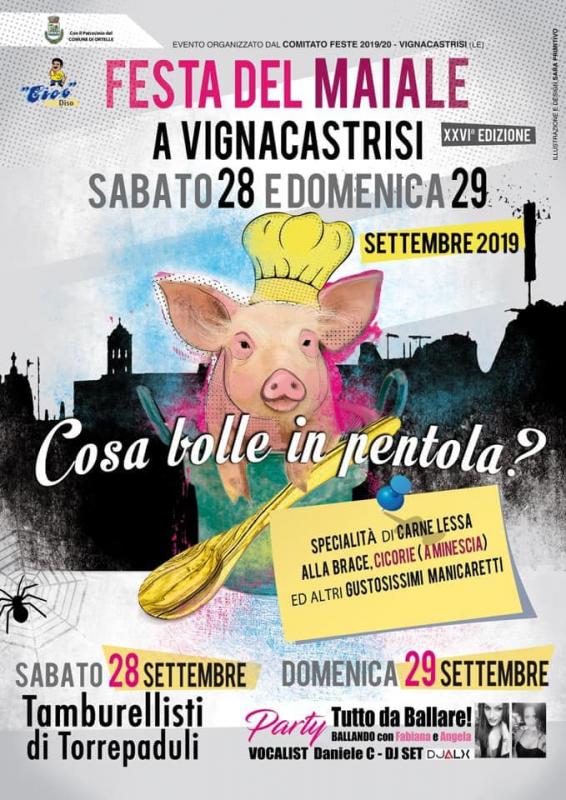 A Vignacastrisi, frazione del Comune di Ortelle in provincia di Lecce si svolge nei giorni Sabato 28 e Domenica 29 Settembre 2019 la 26a edizione della Festa del Maiale.