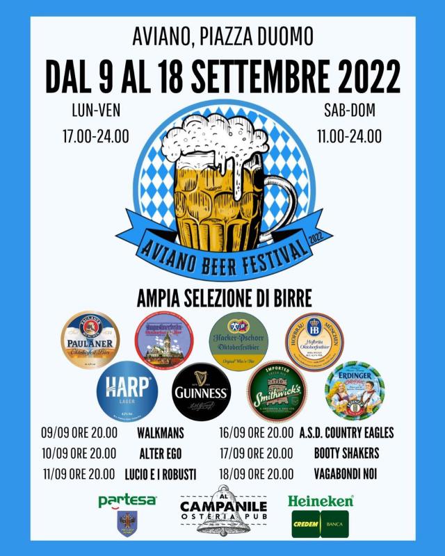 Aviano Beer Festival dal 9 al 18 Settembre 2022 in Piazza Duomo, 10 giorni all'insegna del divertimento.