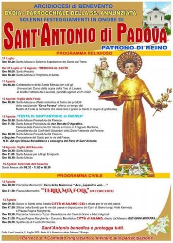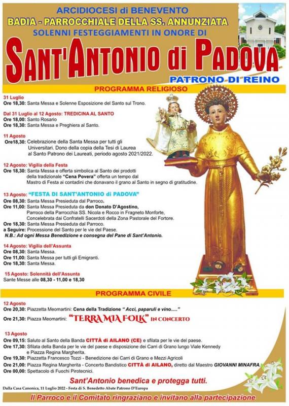 Festeggiamenti di sant'antonio di Padova a Reino 11-15 Agosto 2022