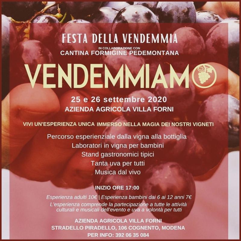 L’evento è in collaborazione con la Cantina Formigine Pedemontana che ci mostrerà l’arte della vendemmia in tutti i suoi passaggi, dalla vigna alla bottiglia.