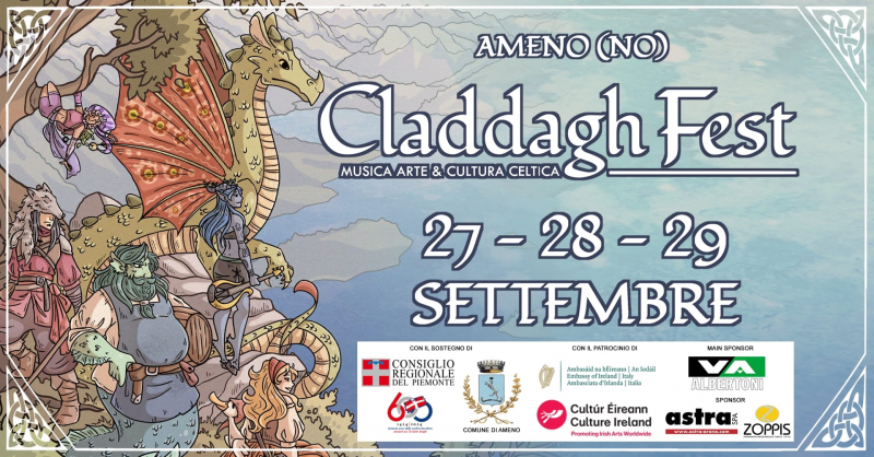 CLADDAGH FEST torna per il quinto anno ad Ameno (NO), nella suggestiva cornice del Lago d'Orta! Tre indimenticabili giornate di musica celtica e folk dal vivo, mercatino celtico, liuterie, rievocazione storica, laboratori, attività, giochi, stage, conferenze, mostre e molto altro ancora!