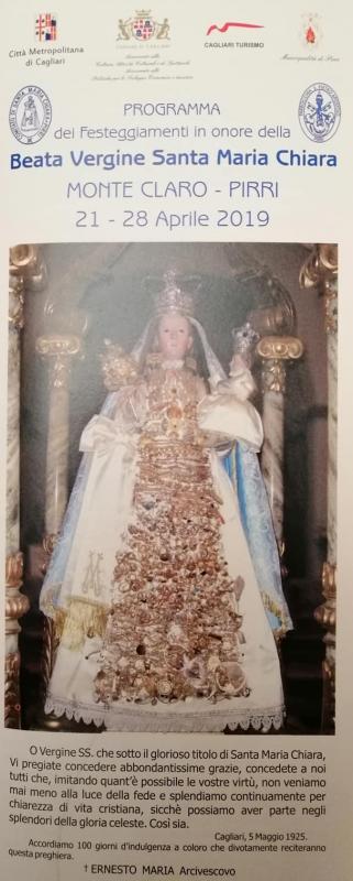 A Pirri, frazione del Comune di Cagliari si svolge ogni anno nel giorno di Lunedì di Pasqua la Festa di Santa Maria Chiara.