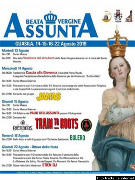 A Guasila in provincia di Cagliari si svolge nei giorni 13, 14, 15, 16 e 22 Agosto 2019 la Festa della Beata Vergine Assunta e la Caccia alla Giovenca.