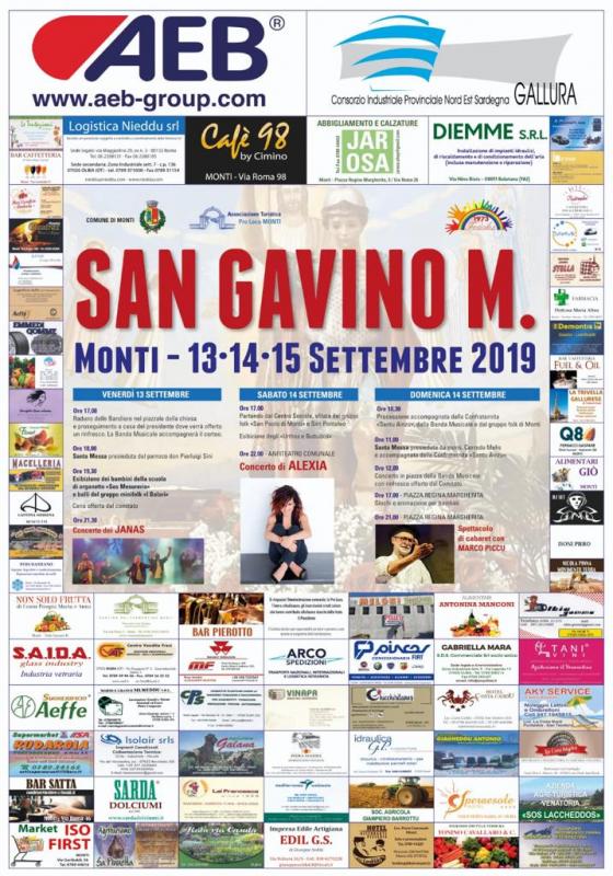 A Monti in provincia di Olbia-Tempio si svolge nei giorni 13, 14, 15 Settembre 2019 la Festa di San Gavino Martire.