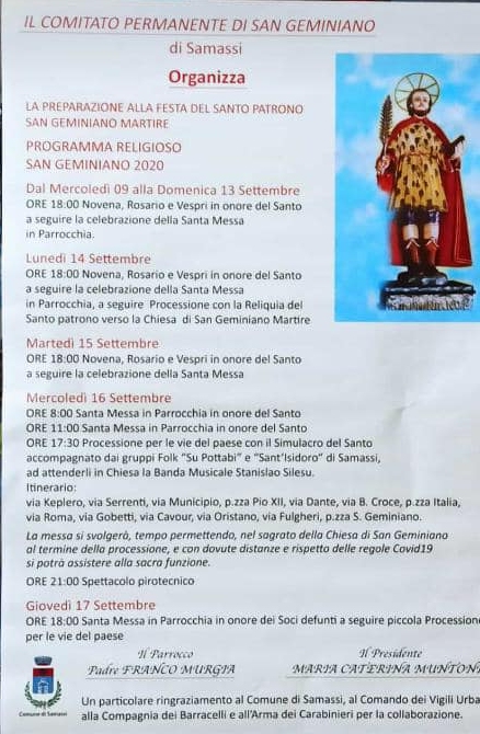 Anche in un anno difficile la Festa di San Geminiano a Samassi (VS), anche se in parte, dal 09 al 17 Settembre 2020 si svolgerà!