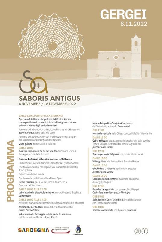 Gergei apre la manifestazione domenica 6 novembre alla scoperta di arte, cultura ed enogastronomia, con la riproposizione degli antichi sapori e mestieri.
