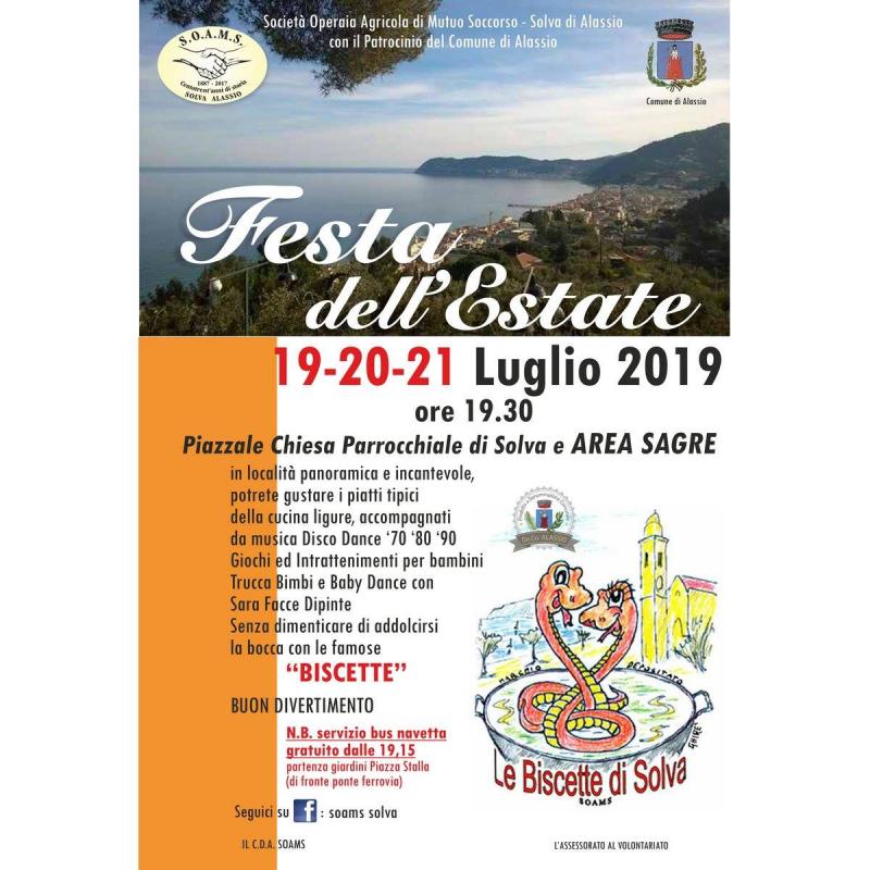 Ad Alassio in provincia di Savona si svolge nei giorni 19, 20, 21 Luglio 2019 la Festa dell'Estate.