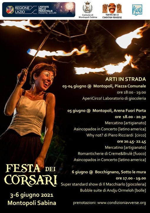 Arrivano gli artisti di strada a Montopoli di Sabina! Laboratori, spettacoli, mercatino artigianale, musica dal vivo, tutto questo è la Festa dei Corsari!