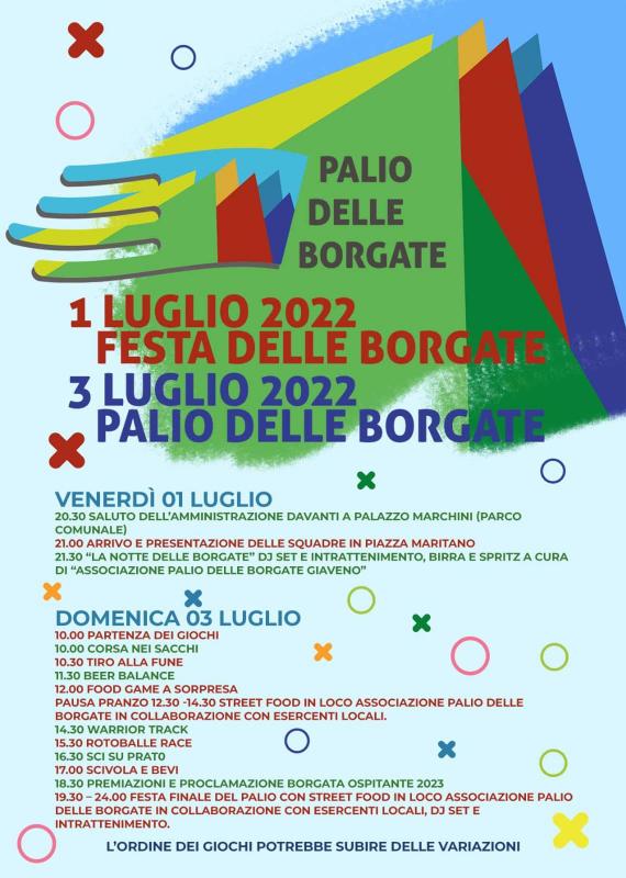 Il Palio delle borgate è organizzato dall’Associazione omonima con il patrocinio e il supporto del Comune di Giaveno.