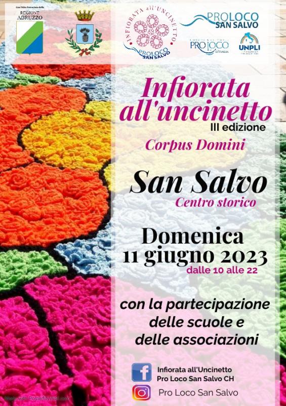 A San Salvo in provincia di Chieti si svolge nei giorni Domenica 11 Giugno 2023l'Infiorata all'Uncinetto.