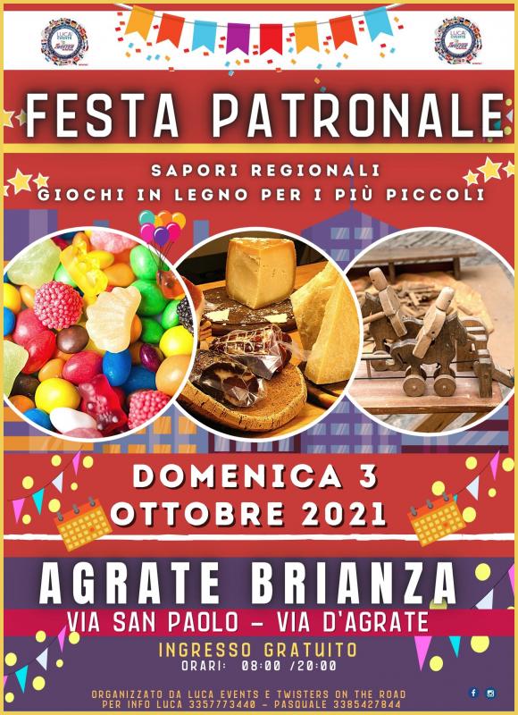 In Via San Paolo e Via D'Agrate ad Agrate Brianza in provincia di Monza-Brianza si svolge nella giornata di Domenica 03 Ottobre 2021, dalle ore 08.00 alle ore 20.00 la Festa Patronale.