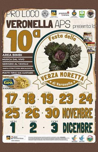 A Veronella in provincia di Verona si svolge nei giorni 17, 18, 19 - 23, 24, 25, 26, 30 Novembre e 1-2-3 Dicembre 2023 la 10a edizione della Festa della Verza Moretta.