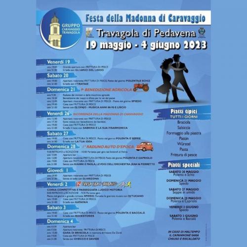 la Festa della Madonna di Caravaggio. a Travagola, frazione del Comune di Pedavena, in provincia di Belluno si svolge nei giorni dal 19 al 21 e dal 26 al 28 maggio e da 1 al 4 giugno 2023