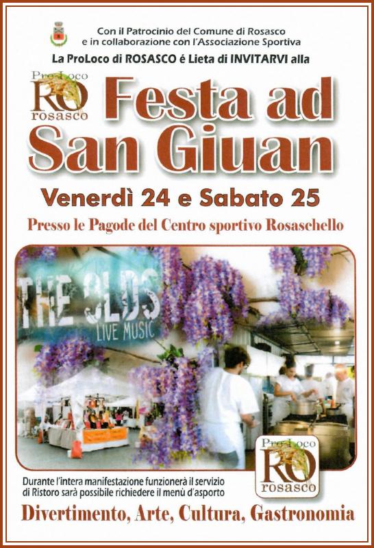 Presso le Pagode del Centro Sportivo Rosaschello a Rosasco in provincia di Pavia si svolge nei giorni Venerdì 24 e Sabato 25 Giugno 2022 la Festa di San Giovanni "Festa ad San Giuan".