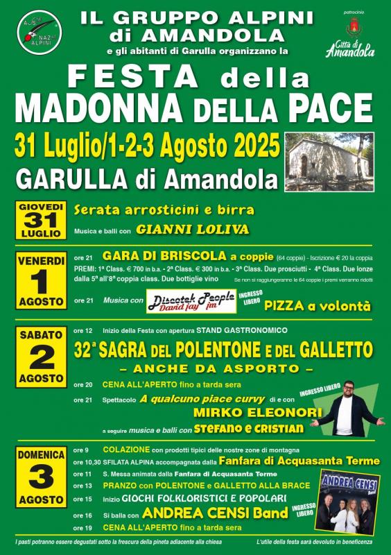 La festa che si svolge da oltre trenta anni è organizzata dal Gruppo Alpini di Amandola ed è una festa molto partecipata anche in relazione alla completezza del programma che soddisfa i gusti di una grande fascia di persone.