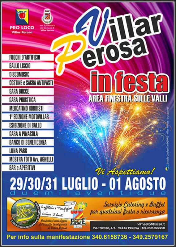 A Villar Perosa in provincia di Torino si svolge nei giorni dal 29 Luglio al 01 Agosto 2022 la manifestazione Villa Perosa in Festa.
