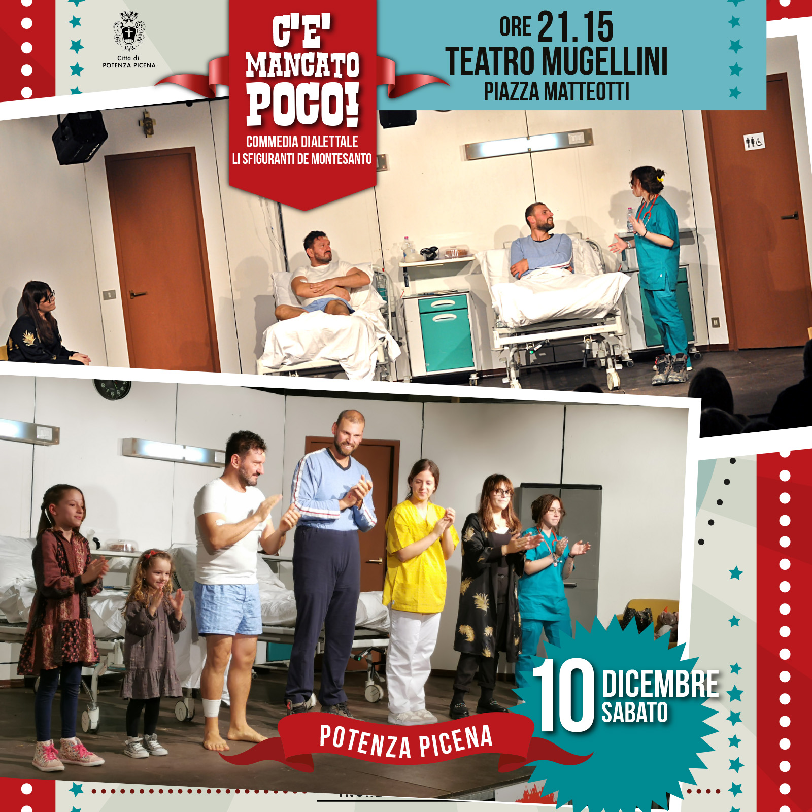 Abbiamo organizzato questa serata per augurarci un Buon Natale!! E così, eccoci nuovamente a Potenza Picena, nel nostro bellissimo teatro, per chi si fosse perso qualche battuta o non ha visto ancora la commedia.