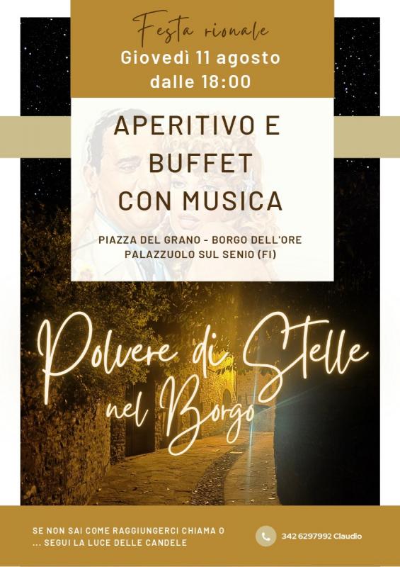 Appuntamento nella serata di giovedì 11 agosto nell’antica Piazza del Grano, nel cuore del Borgo dell’Ore di Palazzuolo sul Senio per la Festa Rionale “Polvere di Stelle”: un’antica tradizione che viene riproposta grazie al lavoro dei volontari e al contributo della BCC della Romagna Occidentale. In programma: aperitivo, buffet e musica per tutti. Una volta giunti a Palazzuolo non sarà difficile trovare la festa, basterà seguire le suggestive luci delle fiaccole e delle candele. L’ingresso è libero (è gradita un’offerta).