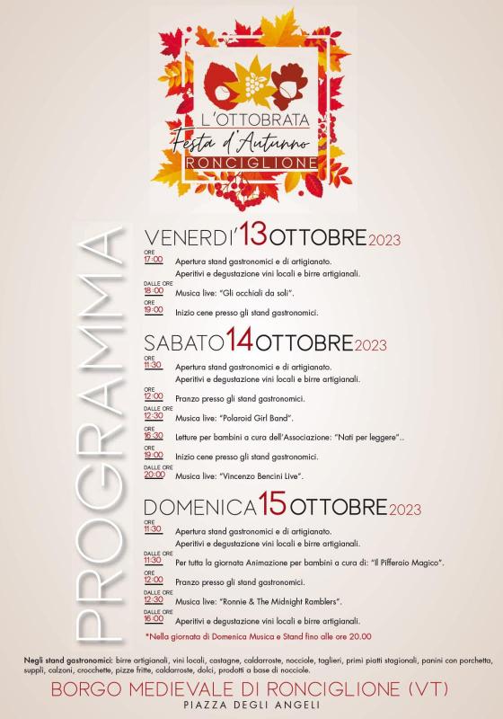 L'Ottobrata - Festa d'Autunno a Ronciglione Dal 13 al 15 ottobre 2023 borgo di sotto, Ronciglione (VT)