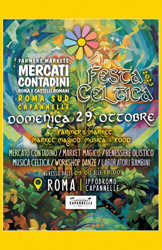 Edizione straordinaria del Mercato Contadino Roma e Castelli Romani all’interno dell’Ippodromo Capannelle Domenica 29 Ottobre 2023, dalle ore 09.00 alle 18.00 con Festa Celtica una giornata da trascorrere tutti insieme, aspettando Halloween, con tanta musica, street food contadino, pic-nic sul prato più grande di Roma, market magico, artigianato, benessere e operatori olistici, workshop, degustazioni di prodotti della tradizione antica, laboratori e attività per grandi e bambini, ragazzi, adulti e un sacco di curiosità dal mondo celtico!