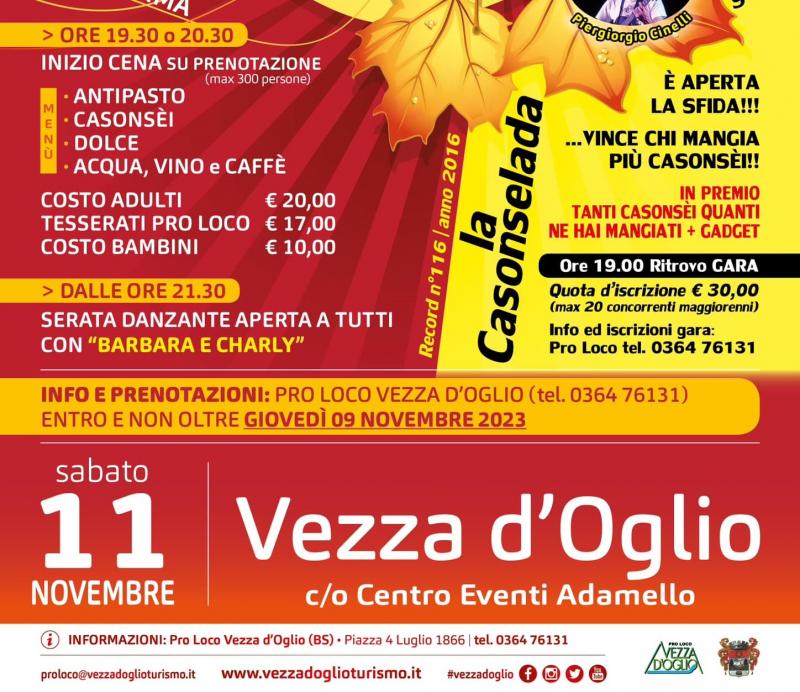 -INFO E PRENOTAZIONI: PRO LOCO VEZZA D’OGLIO (tel. 0364 76131) entro e non oltre Giovedì 10 Novembre 2022