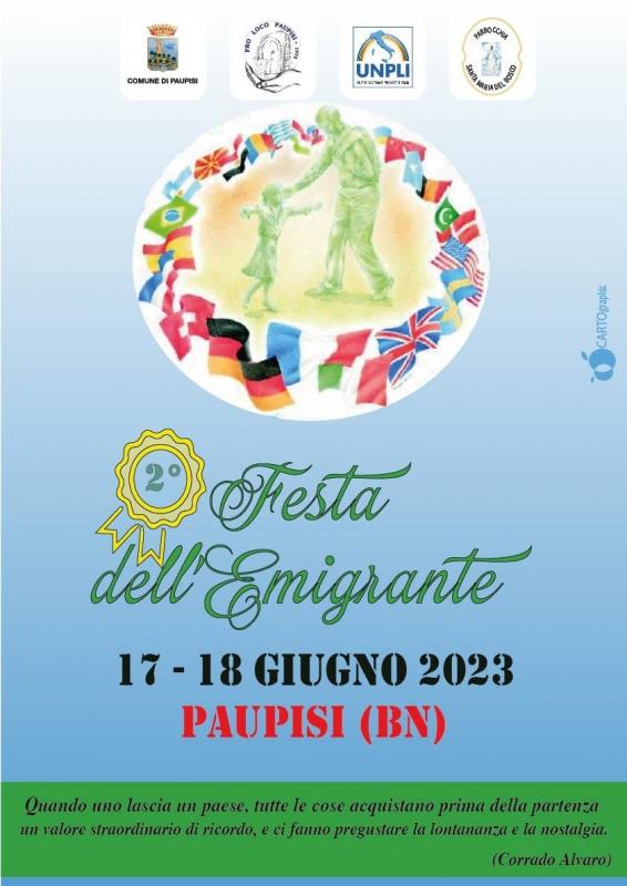Dopo il successo della prima edizione dello scorso anno, che ha registrato il rientro dall'estero e da altre parte di Italia di diversi paupisani, la Pro Loco di Paupisi in collaborazione con il Comune e la Parrocchia riproporrà anche quest'anno la Festa dell’Emigrante nei giorni 17 e 18 giugno.