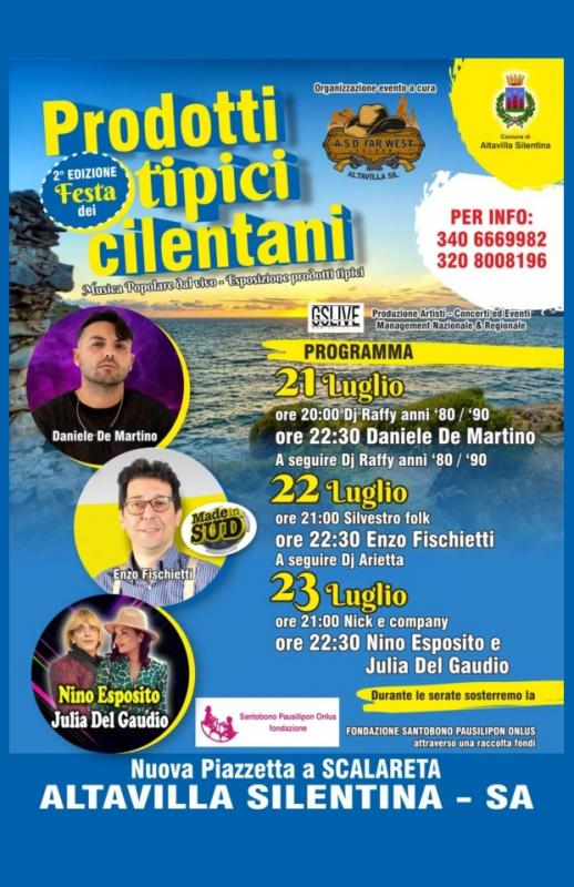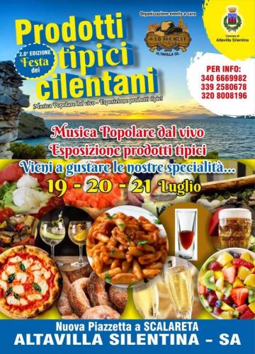 Nella nuova piazzetta a Scalareta di Altavilla Silentina in provincia di Salerno si svolge nei giorni 19, 20, 21 Luglio 2024 la 2a Edizione della Festa dei Prodotti Tipici Cilentani.