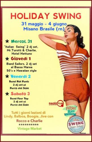 A Misano Brasile, frazione del Comune di Misano Adriatico in provincia di Rimini si svolge nei giorni dal 31 Maggio al 04 Giugno 2023 la manifestazione Holiday Swing.
