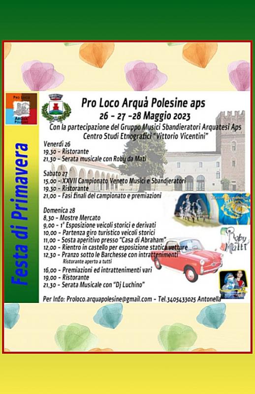 Ad Arquà Polesine in provincia di Rovigo si svolge nei giorni dal 23 al 25 Maggio 2025 la Festa di Primavera.