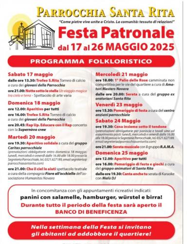 Festa Patronale di Santa Rita a Novara dal 17 al 26 Maggio